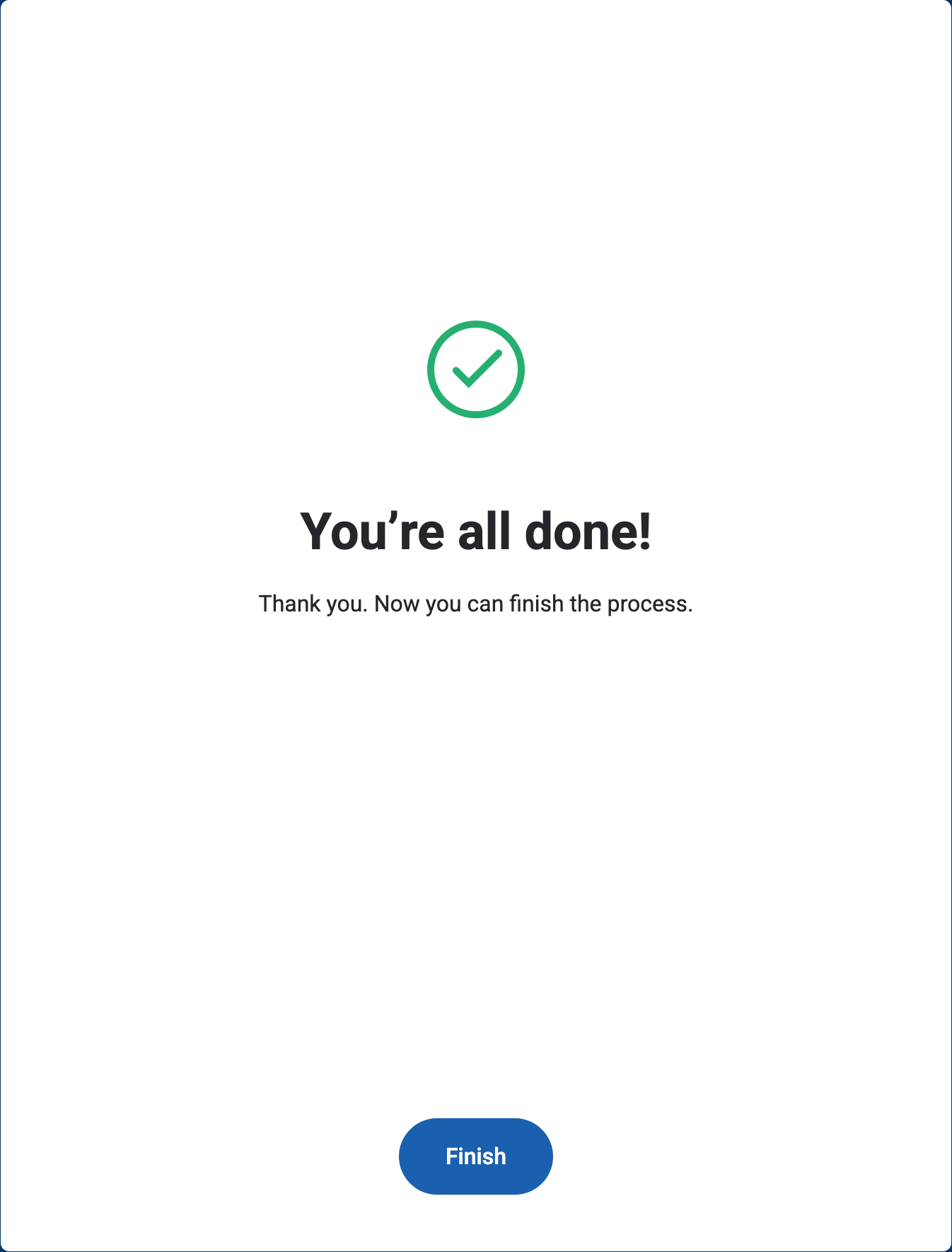 Once verification is complete, a Success screen will appear. Click Finish to return to the DIDWW User Panel.