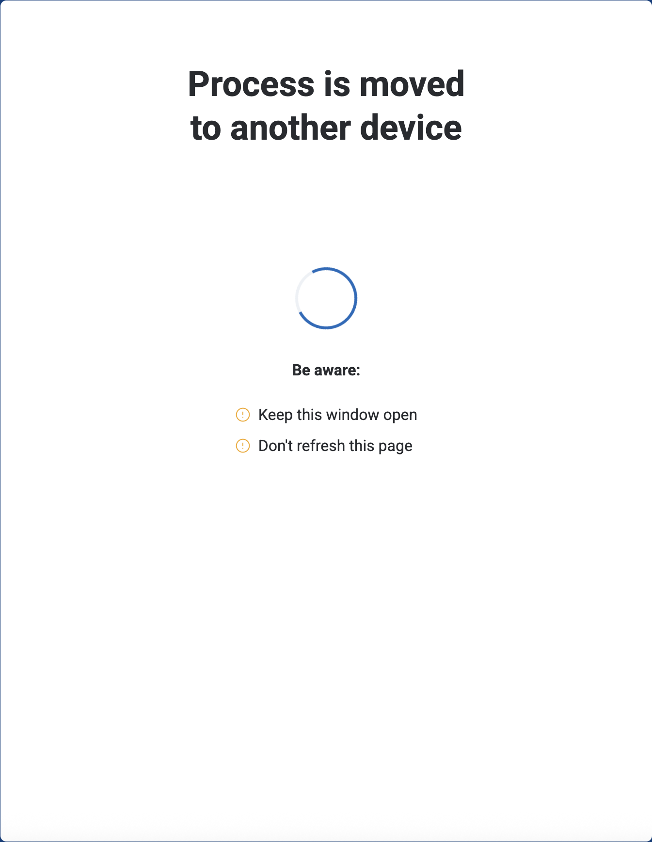 Once opened, the message “Process is moved to another device” will appear on your computer screen.