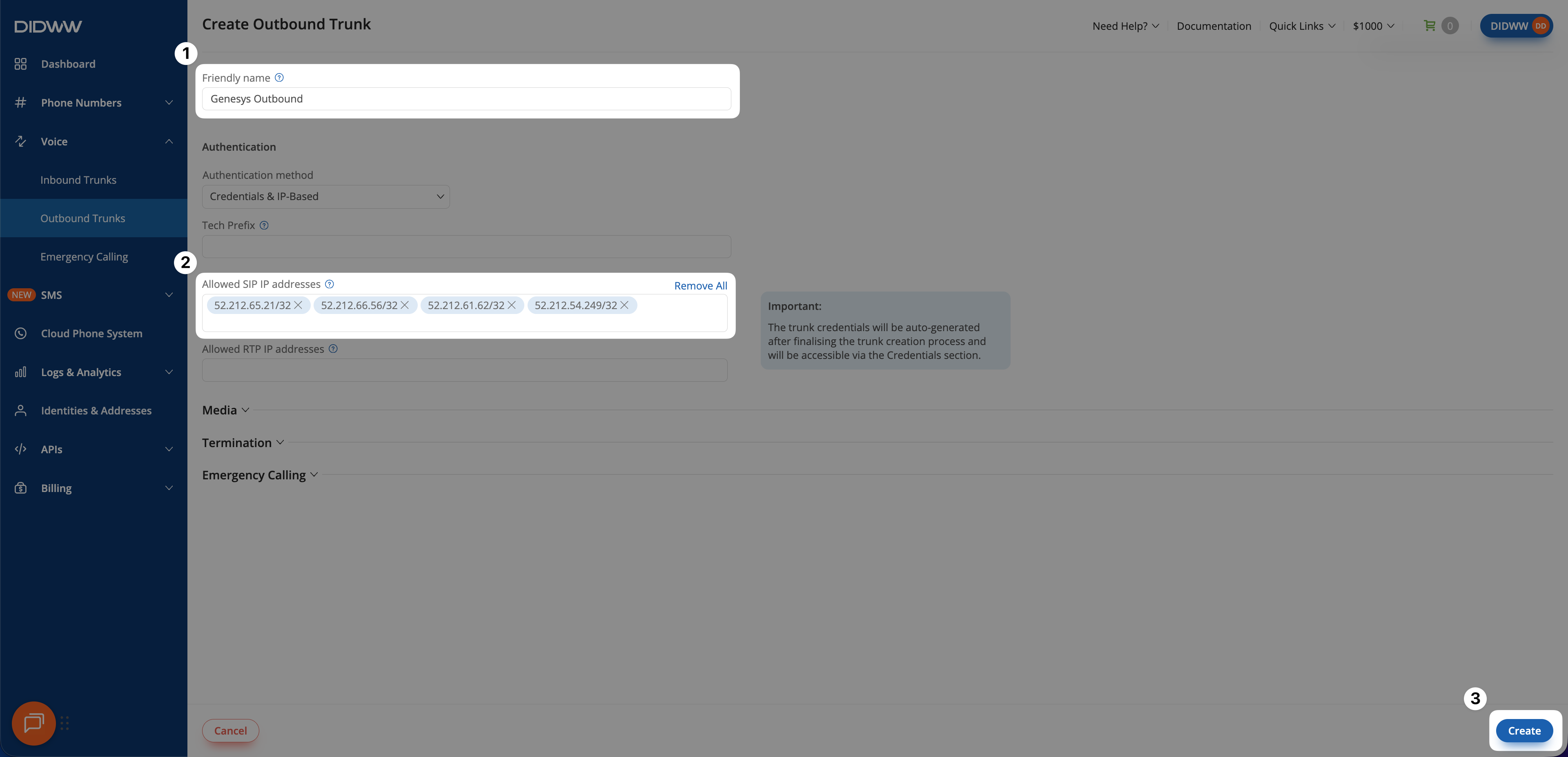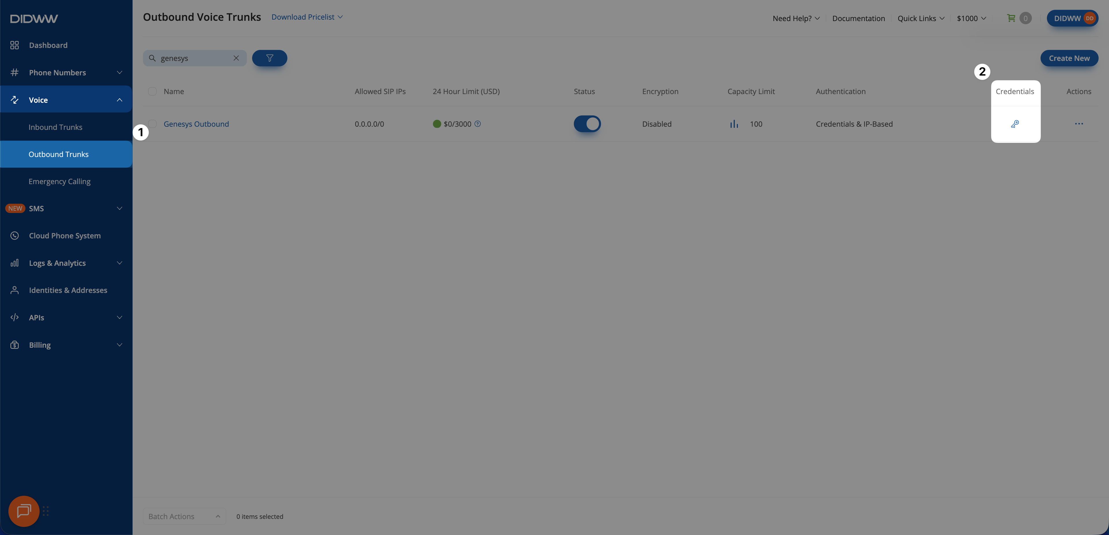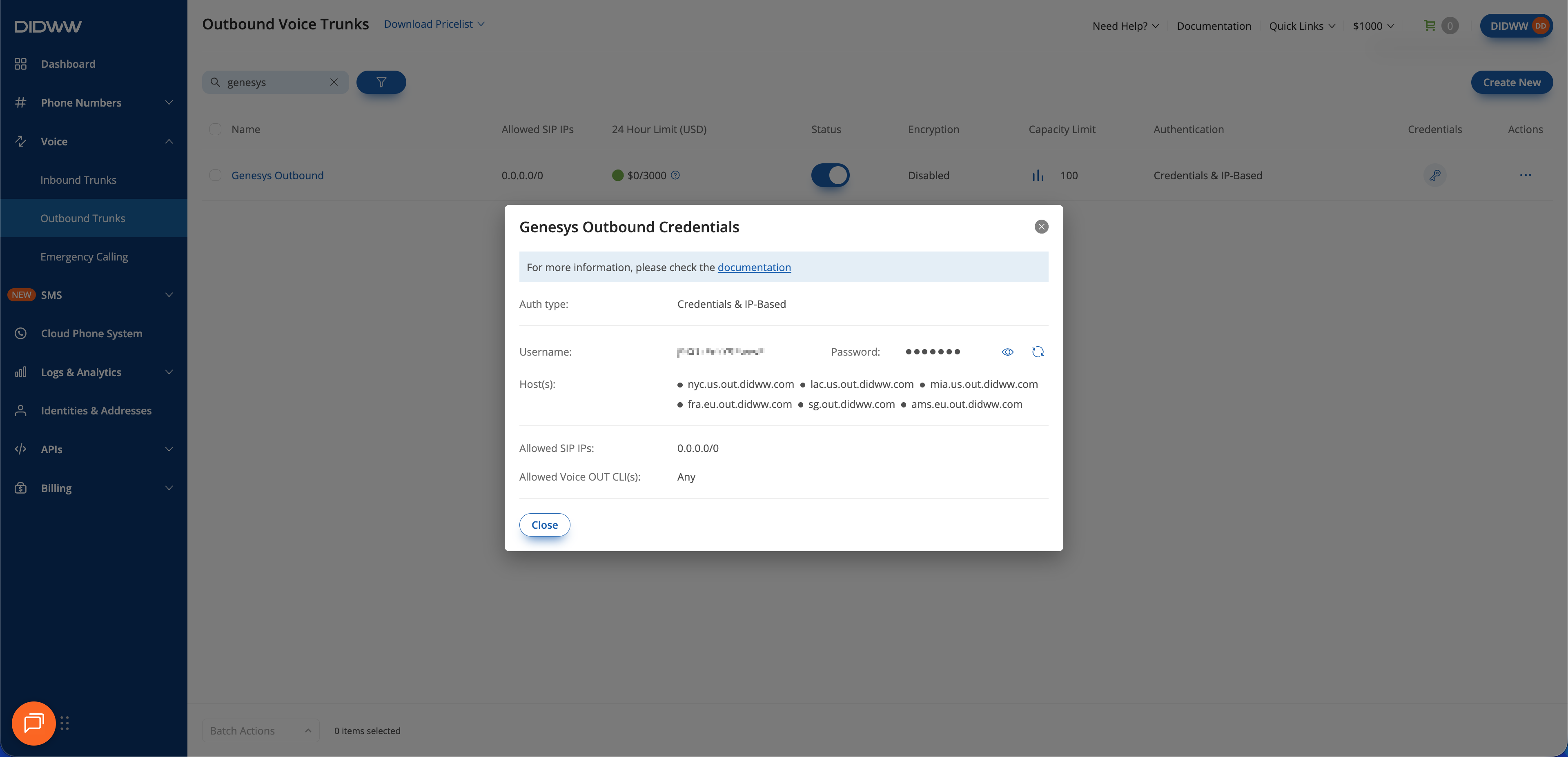 To enable outbound calling from Genesys Cloud CX, create an Outbound SIP Trunk in DIDWW.