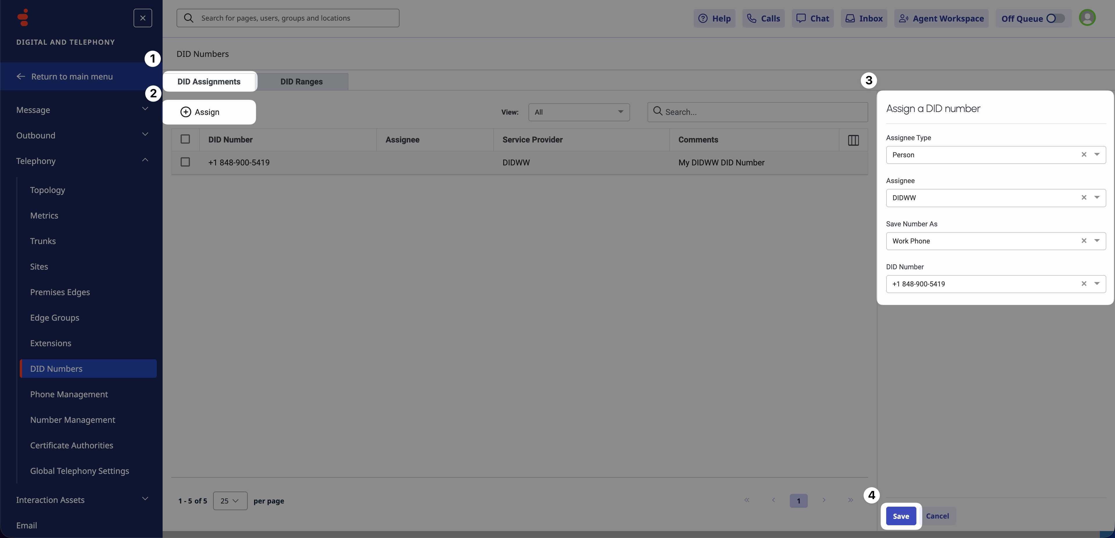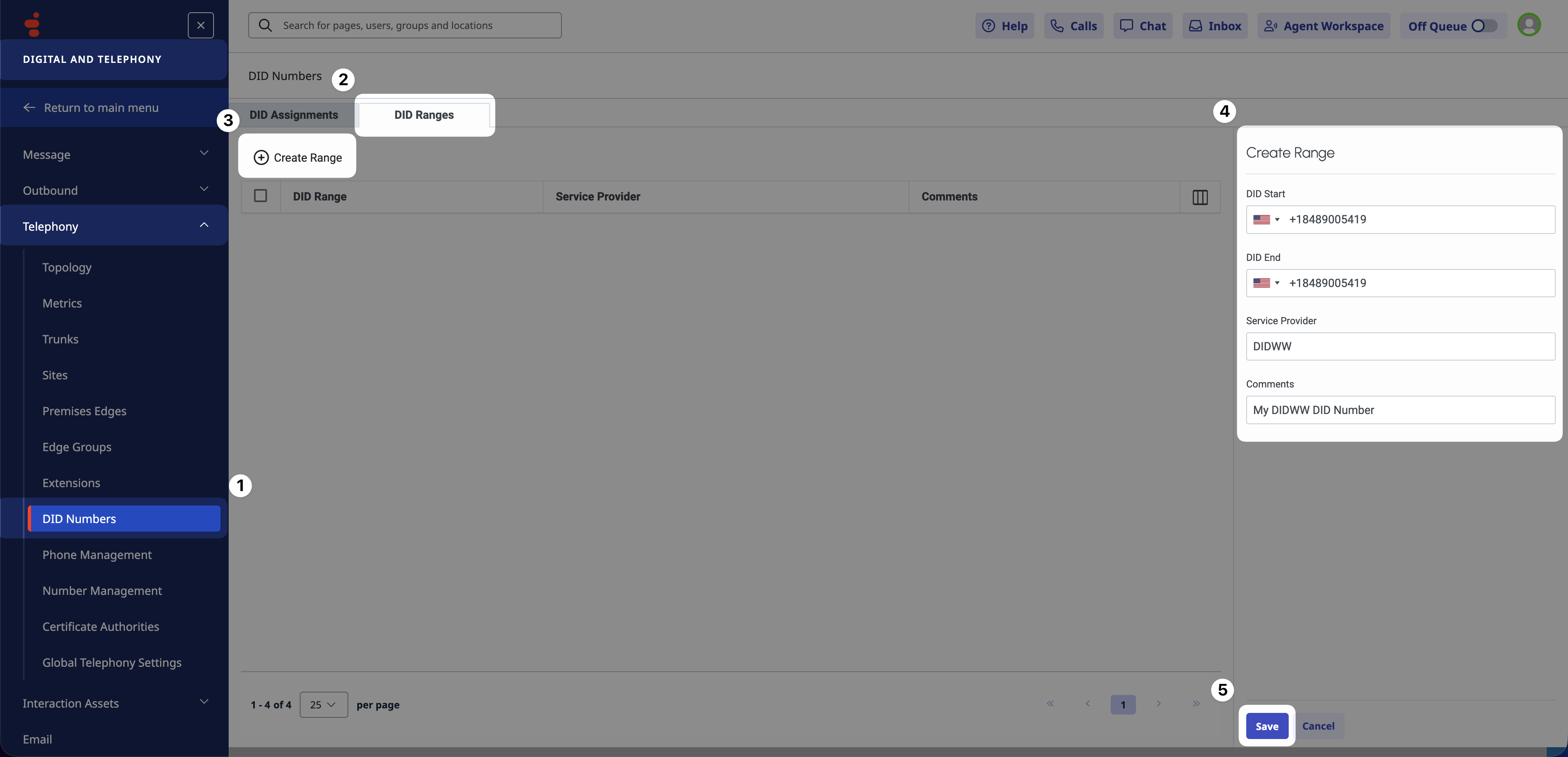 Create and assign DID ranges so Genesys Cloud CX can route incoming calls.
