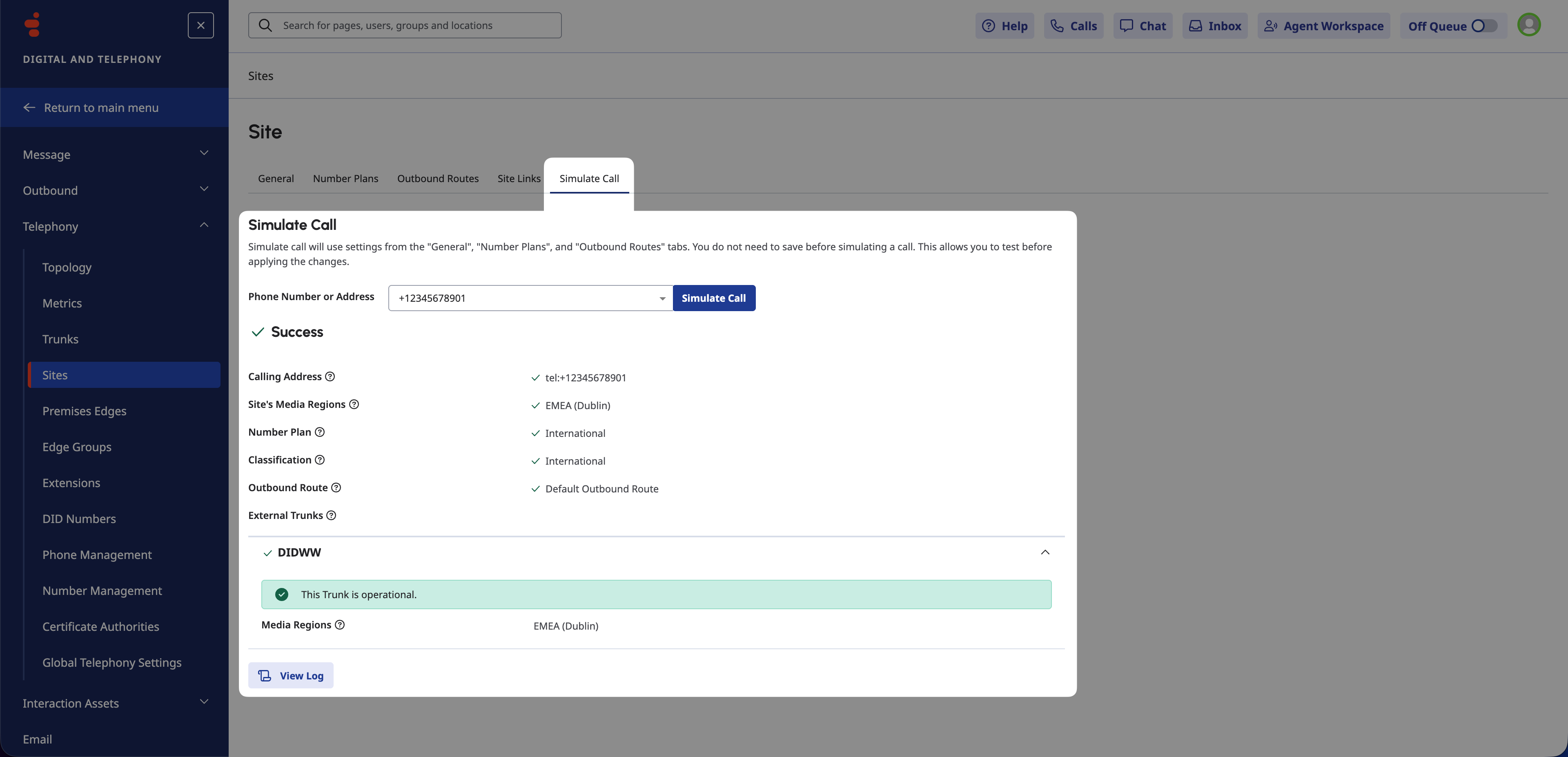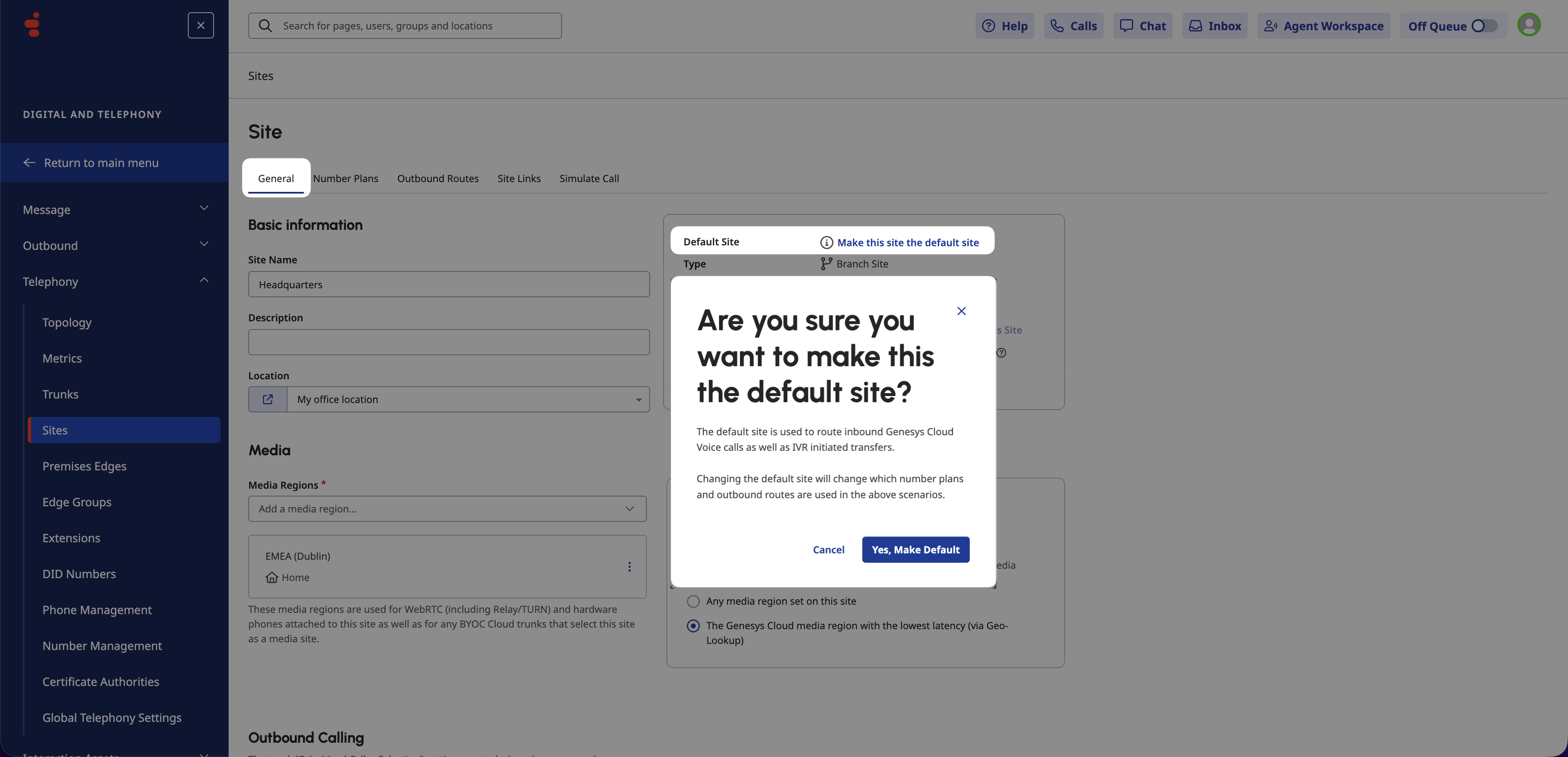 Go to Telephony > Sites and click on your Site’s name.