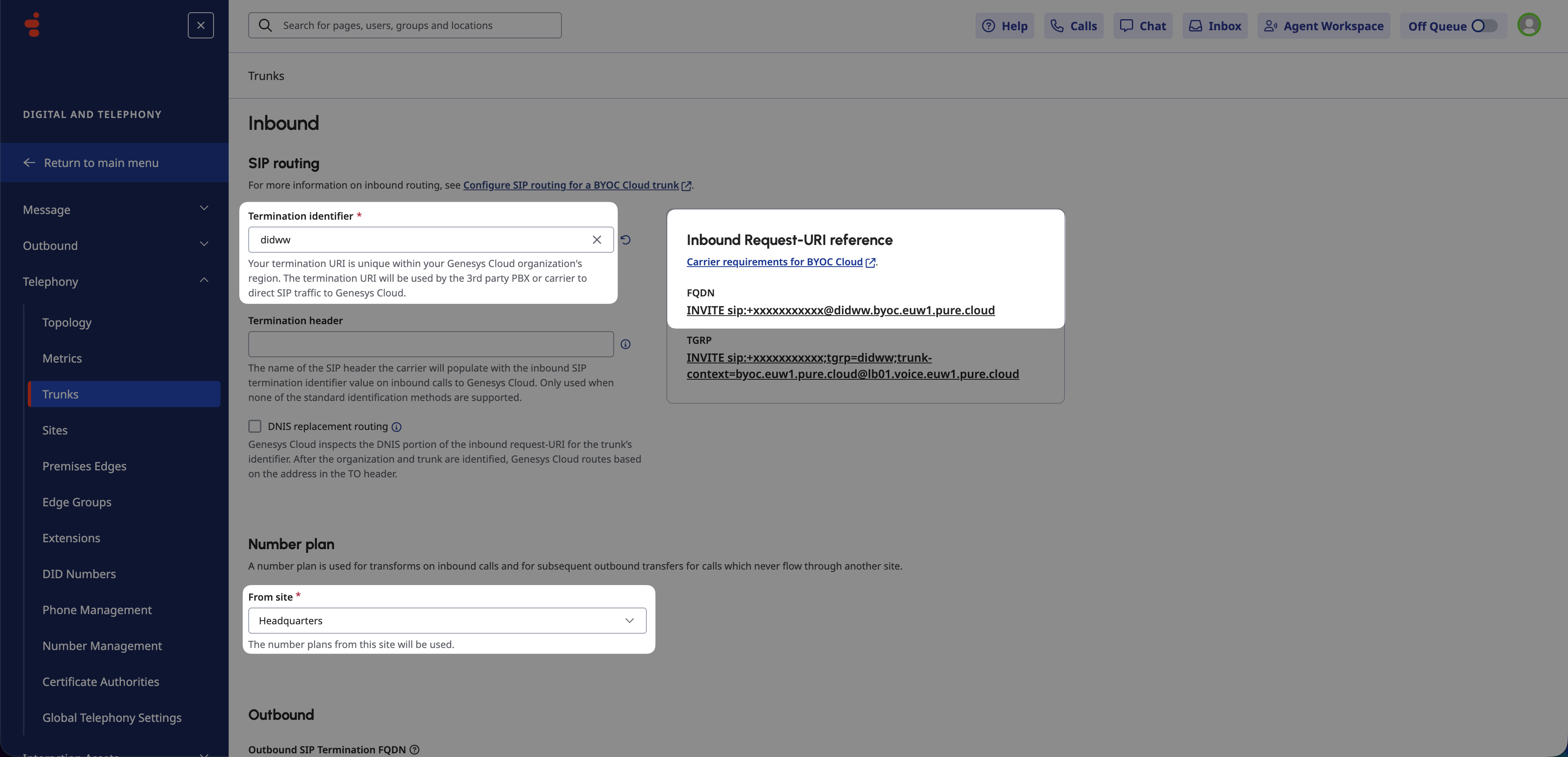 Combine DIDWW connectivity with Genesys Number Plans and Sites.
