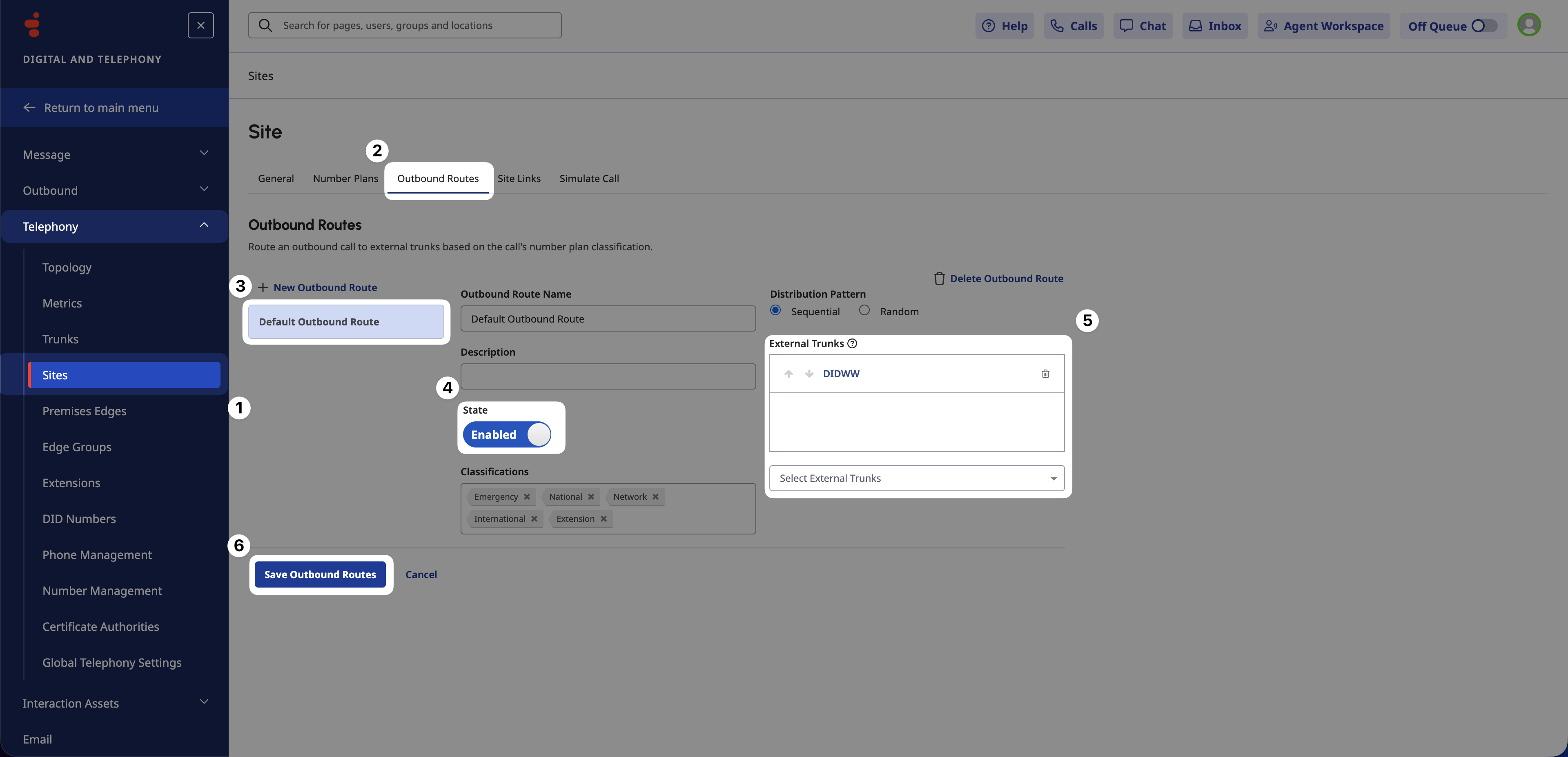 Click Save Outbound Routes.