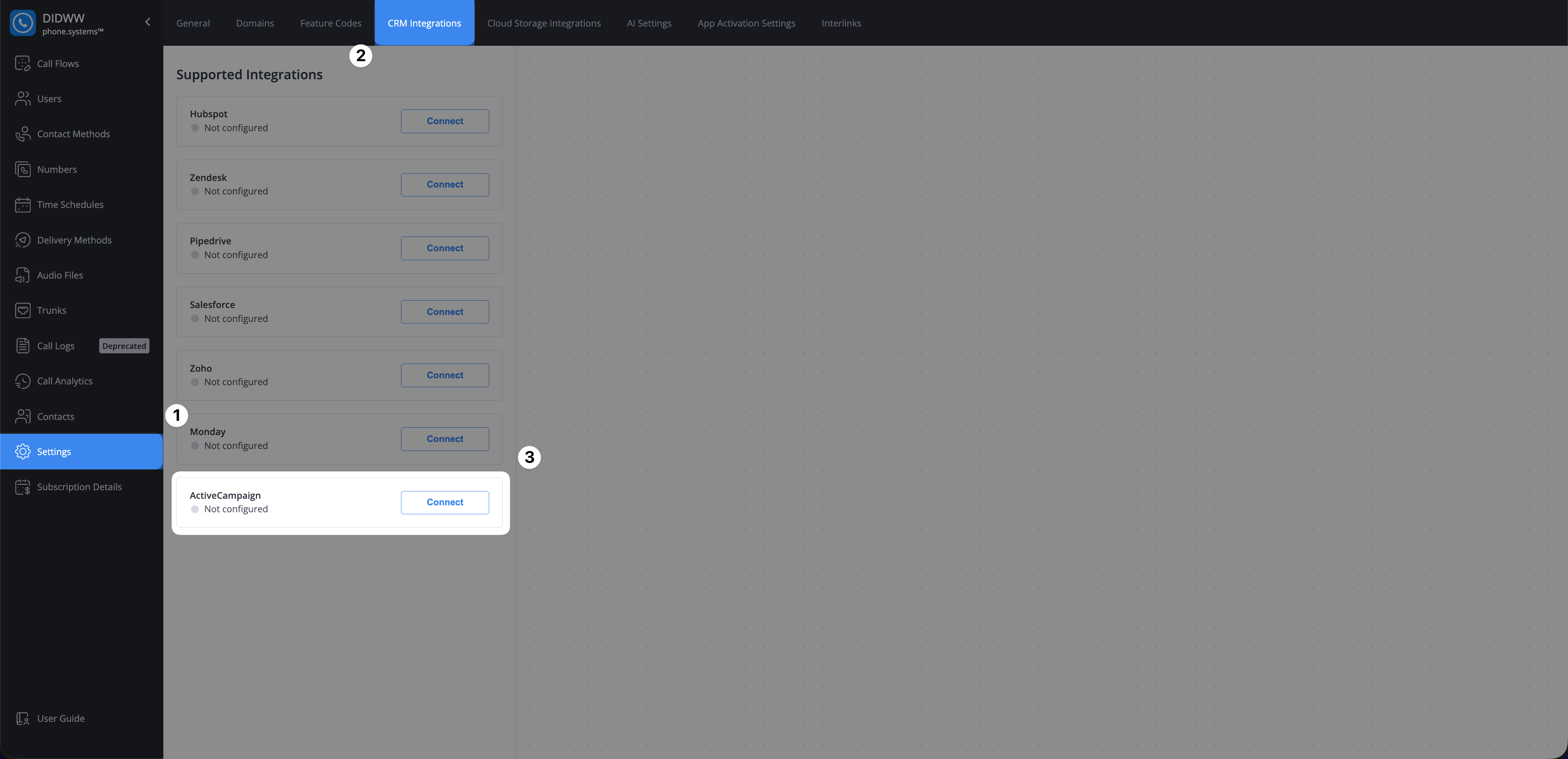 This guide provides detailed steps on integrating phone.systems™ with ActiveCampaign. Follow the instructions below to complete the setup process.