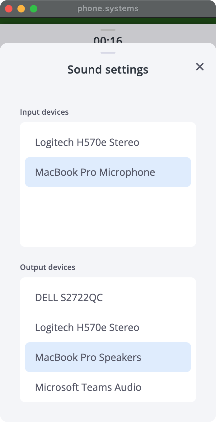 Here, you can independently select which devices are used for input and output during an active call.