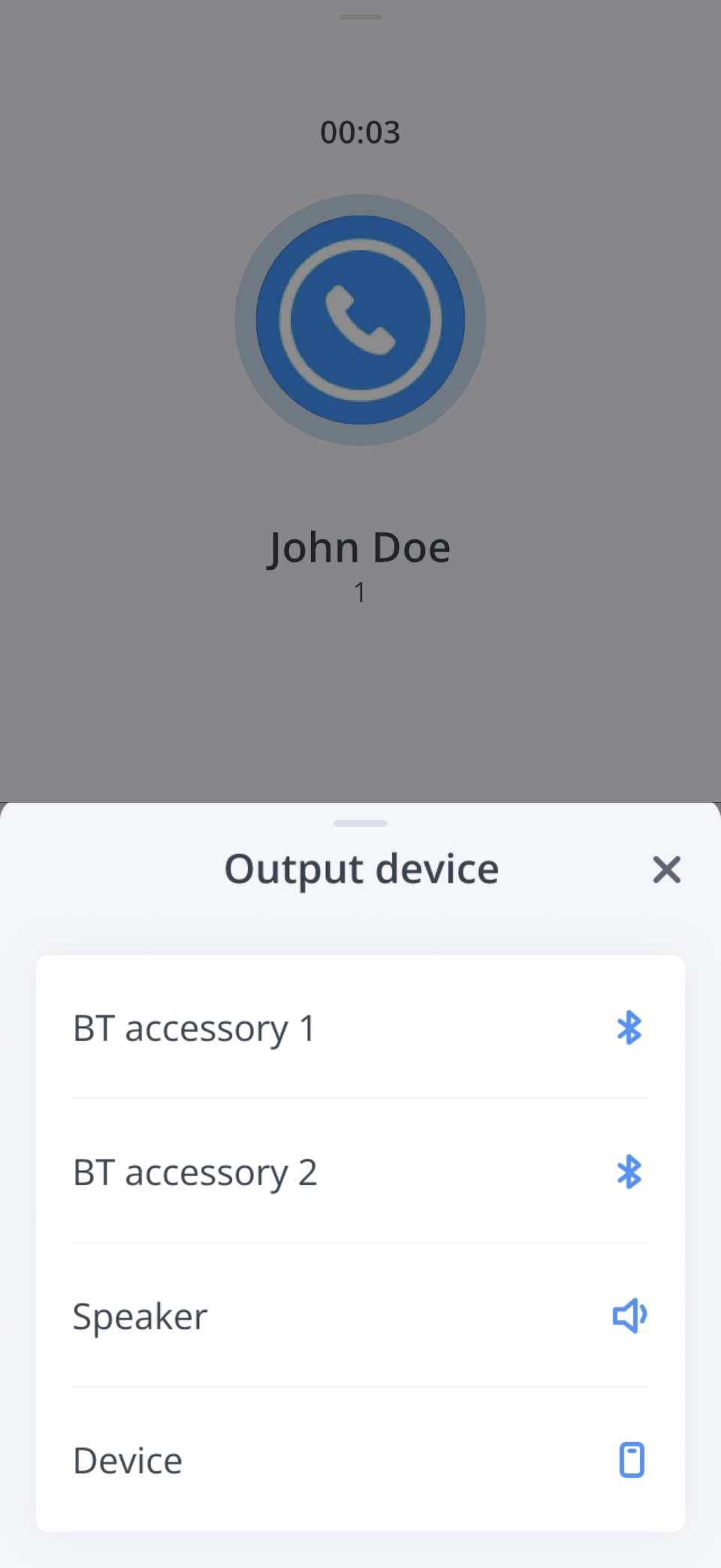 Tap it to open the Output device sheet, where you can choose between Bluetooth accessories, the speaker, or the device earpiece.