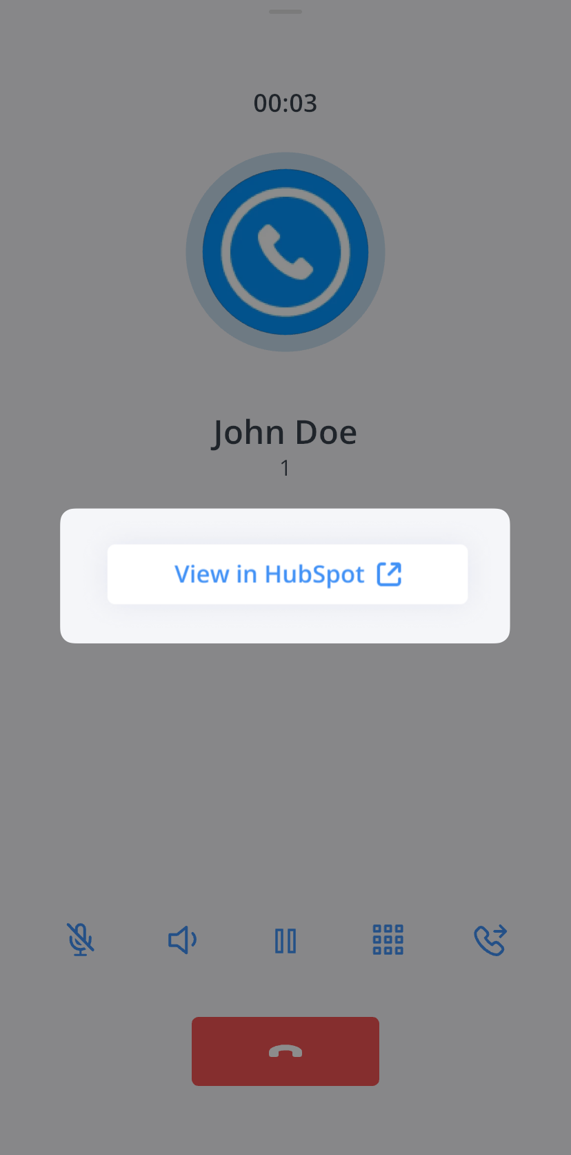 When a contact is synced from a connected CRM integration, a View in CRM button appears on the in-call screen.
