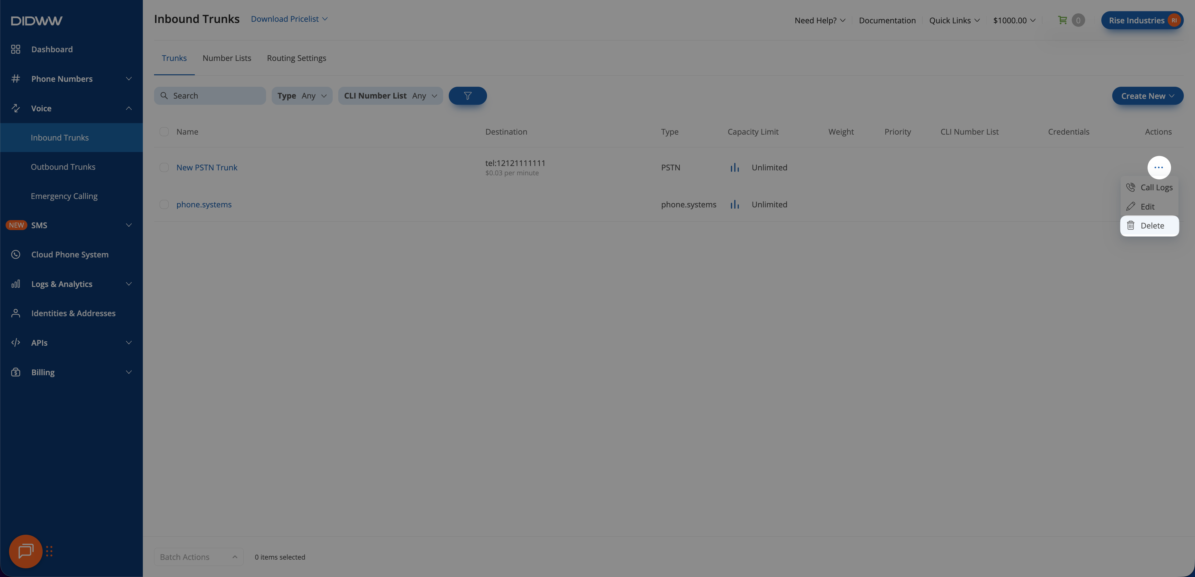 After the trunk is created, assign it to your DID number(s). For detailed instructions, see How to Assign the Trunk.
